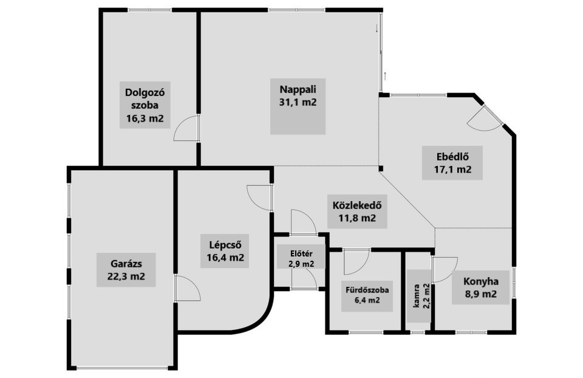 Garázs – 22 m2: egy autó és sporteszközök (pl. biciklik, rollerek) számára
