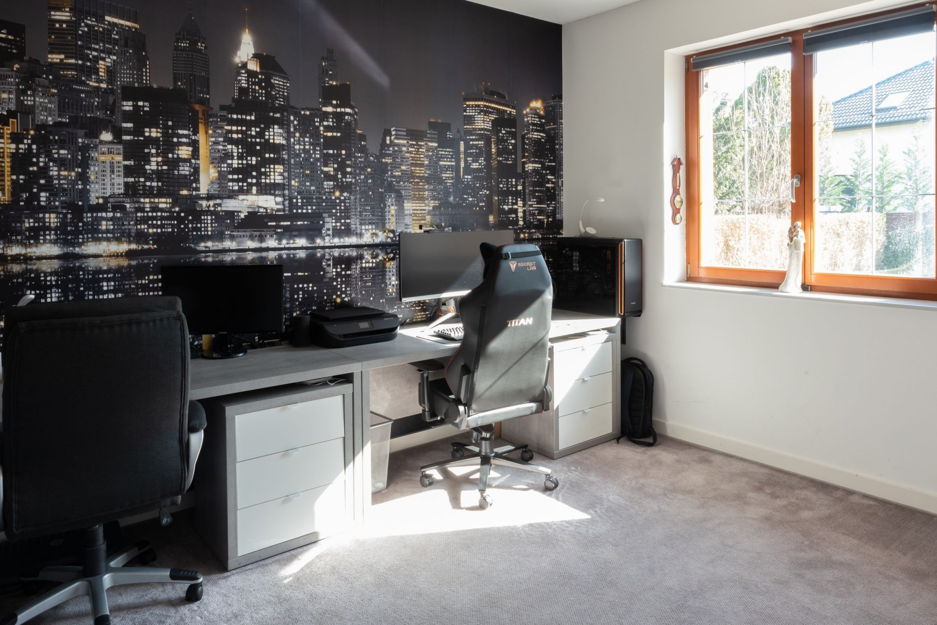 Dolgozószoba - 15 m2: 2 nagyméretű dolgozóasztal és beépített polcrendszer