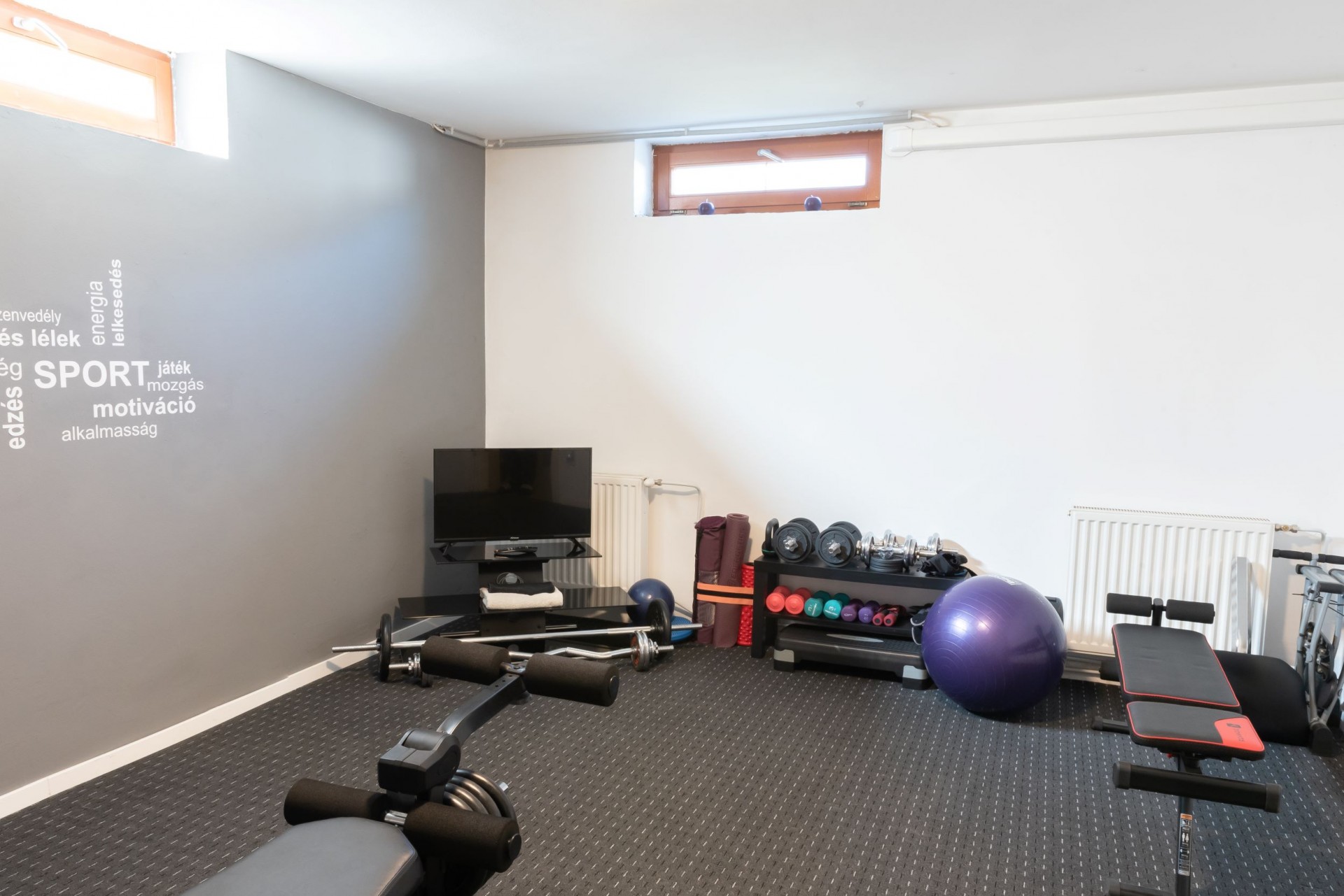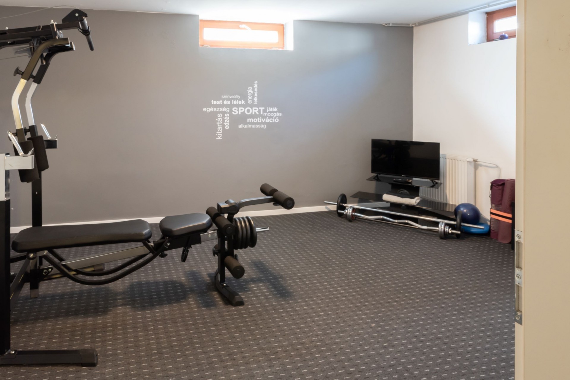 Rekreációs szoba – 21 m2: sport felszerelésekkel, gépekkel, TV