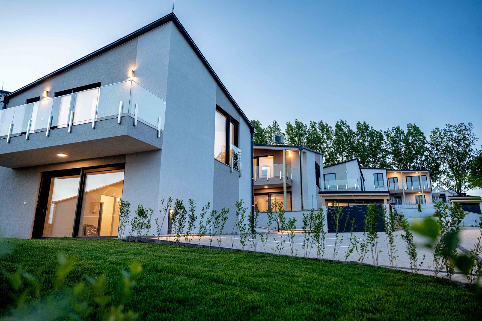 Minden ingatlanhoz saját kertrész tartozik öntözőrendszerrel kiépítve.