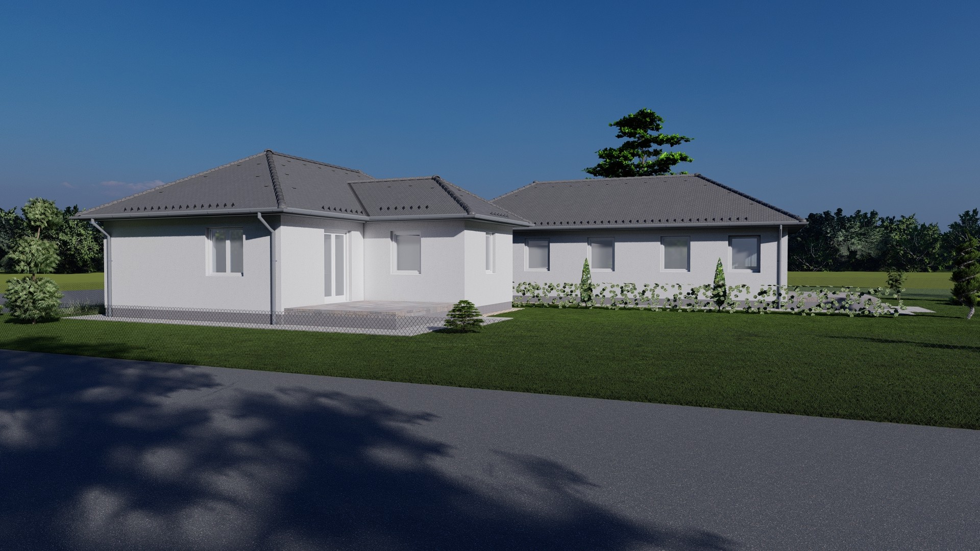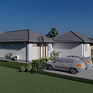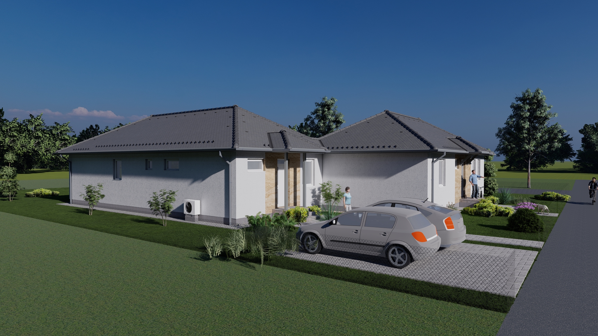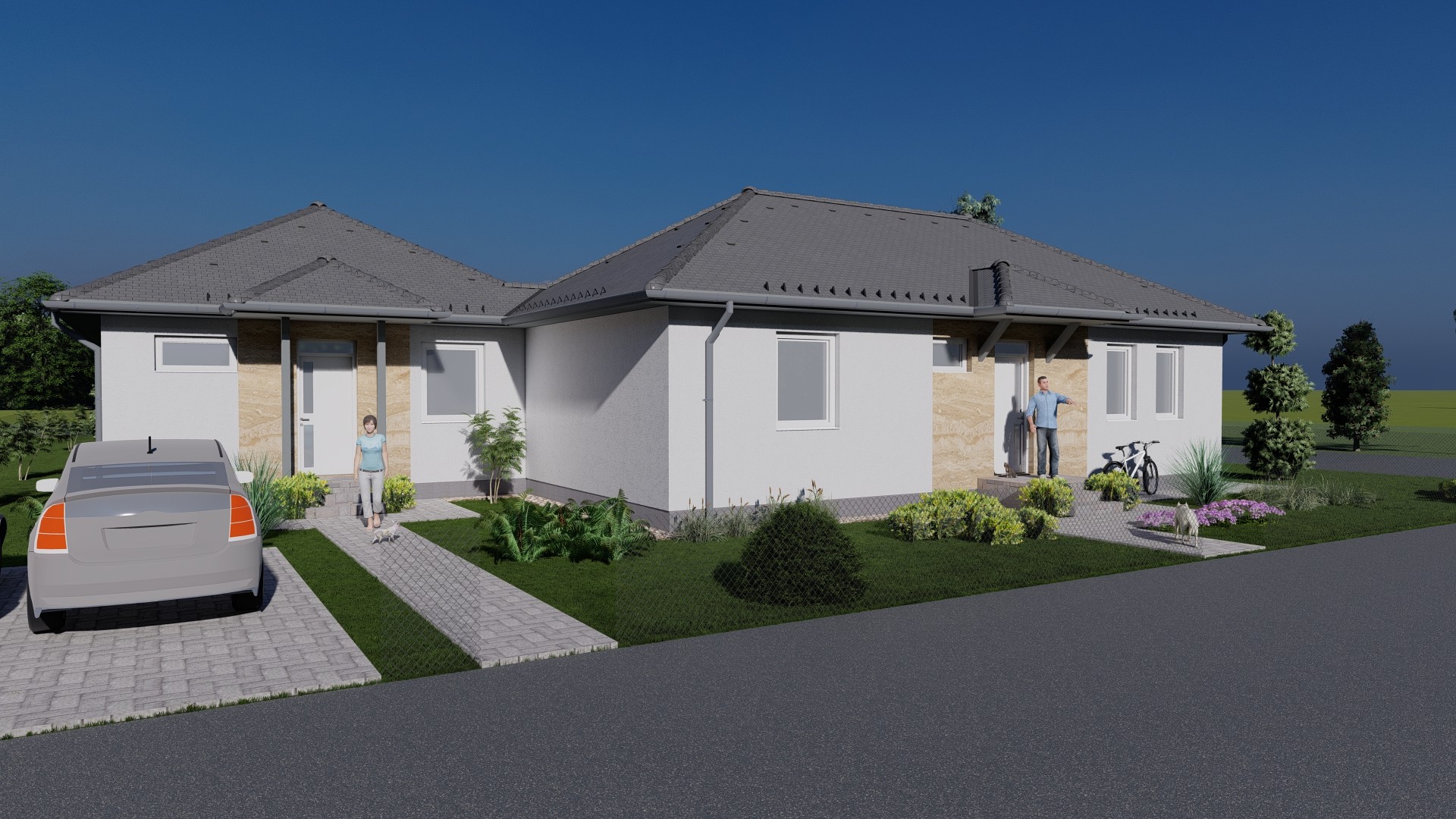 A telken 2 lakásos társasházként épül a projekt, külön helyrajzi számmal, elszeparált telekkel. A két ingatlan csupán 1 m-es falszakaszon érintkezik a háztartási helyiségeknél, de ez a kis falszakasz is hanggátló réteggel lesz ellátva.