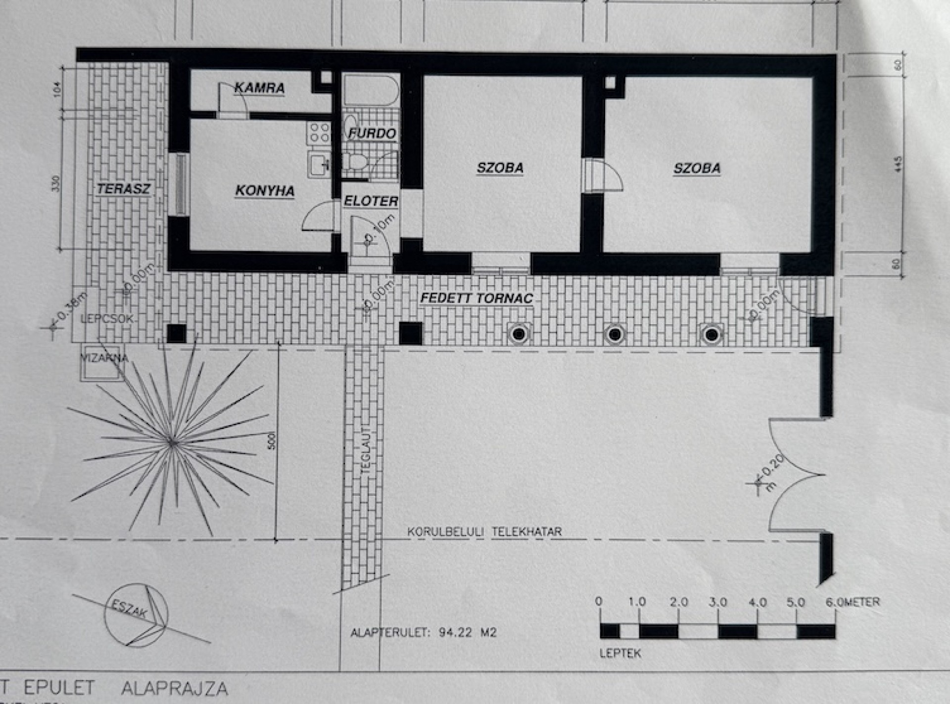 A főépület 64 m² hasznos alapterületű + 18 m2 fedett tornác + 10 m2 hátsó terasz tartozik hozzá.